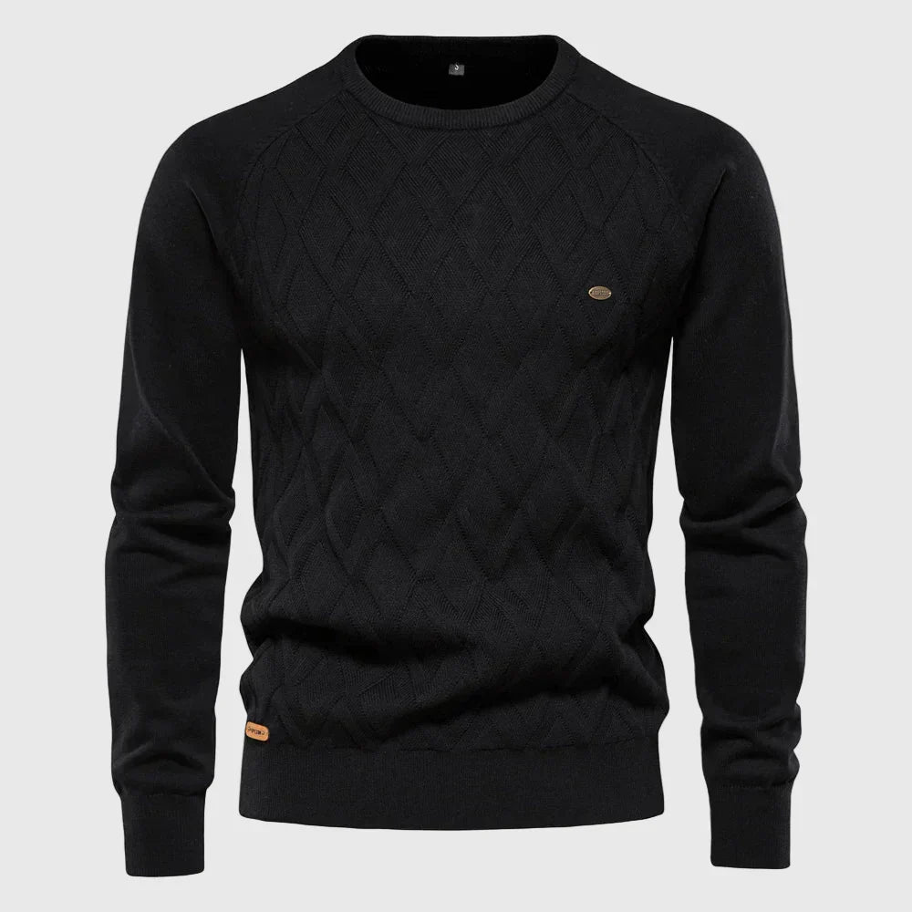 Zažijte nejvyšší komfort nošení s Huberd | Pánský svetr s kostkovaným vzorem. Vyroben z ultra-měkké bavlny s přesně správnou elasticitou, nabízí tento svetr dokonalé padnutí a stylový, nadčasový vzhled. Ať už na každodenní nošení nebo na speciální příležitosti – tento svetr spojuje styl a pohodlí na nejvyšší úrovni.