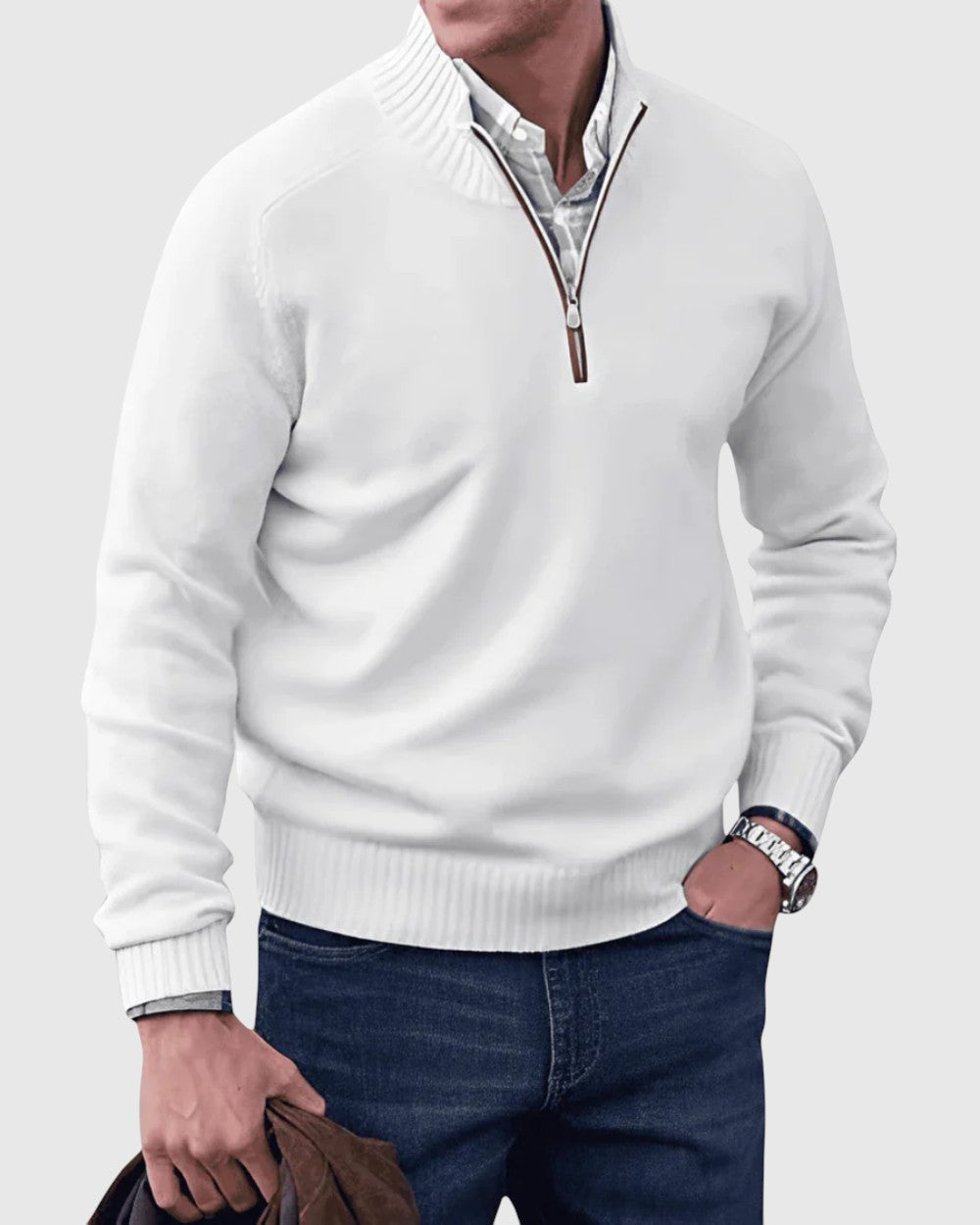 Kardigan s zipem je ideální pro muže, kteří hledají rovnováhu mezi teplem, pohodlím a moderním stylem. Vyroben z měkké a prodyšné látky, nabízí uvolněný, ale upravený vzhled - ideální pro vrstvení, neformální procházky nebo příležitosti smart-casual.