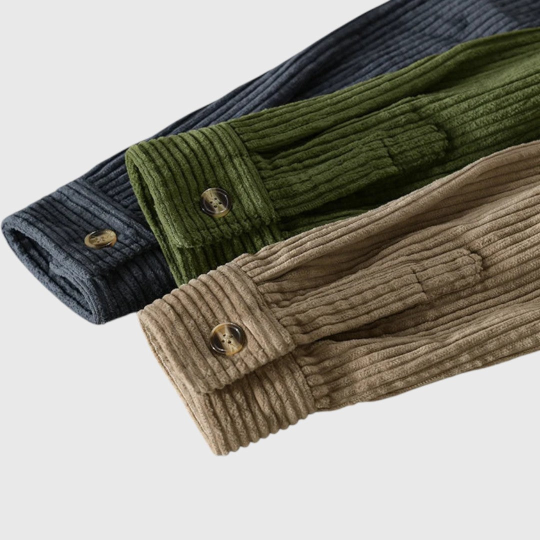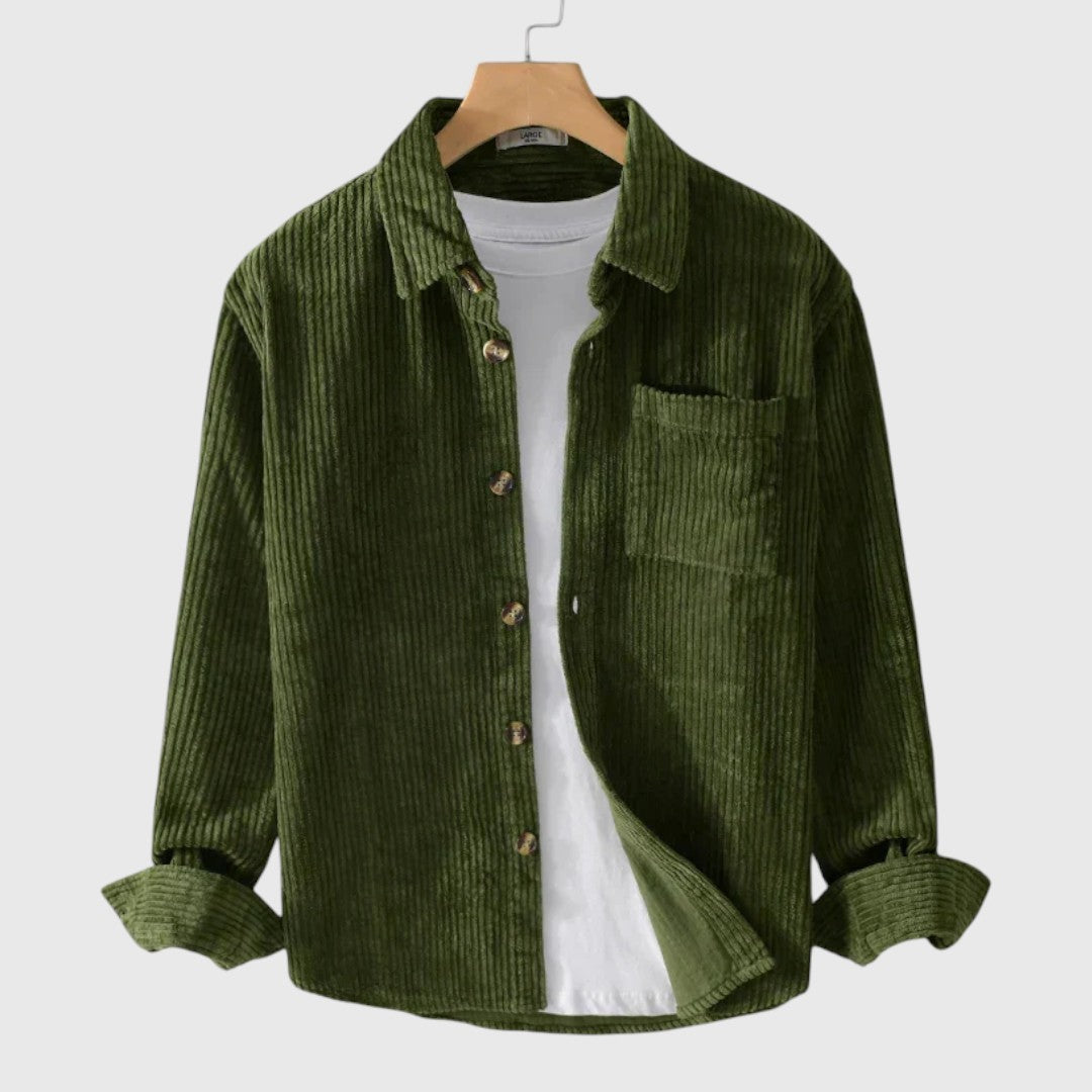 Měkký manšestr je teplý, ale prodyšný, zatímco hluboká lesní zelená okamžitě dodává tvému vzhledu charakter.