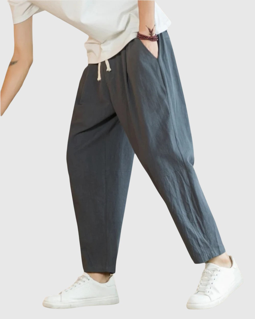Tyto bavlněné kalhoty dokonale kombinují eleganci s každodenní praktičností, což z nich činí všestranný doplněk do každého šatníku.