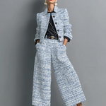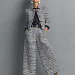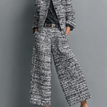 • Lichotivý střih s celodenním komfortem Tvarované sako zvýrazňuje siluetu, zatímco volnější nohavice umožňují přirozený pohyb a pohodlí.