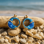 Objevte náušnice Nereida, které zachycují pohyb moře do dokonalého kruhu. Každá vlna je ručně vyřezávaná a malovaná v hlubokých modrých odstínech a zlatých detailech, které připomínají třpytění mořské pěny.