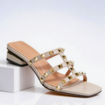 Sandály Vanesa jsou navrženy pro ženy, které chtějí svému outfitu dodat okamžitý šmrnc, aniž by musely obětovat své pohodlí. Díky modernímu čtvercovému tvaru špičky, rafinovaným hrotům ve zlatém tónu a praktickému nazouvacímu designu představují tyto sandály dokonalé spojení rebelie a čisté elegance. Jsou vybaveny polstrovanou podpůrnou stélkou a nízkým blokovým podpatkem, což z nich dělá ideálního společníka pro dny, kdy chcete vypadat sebevědomě a upraveně od rána až do večera.
